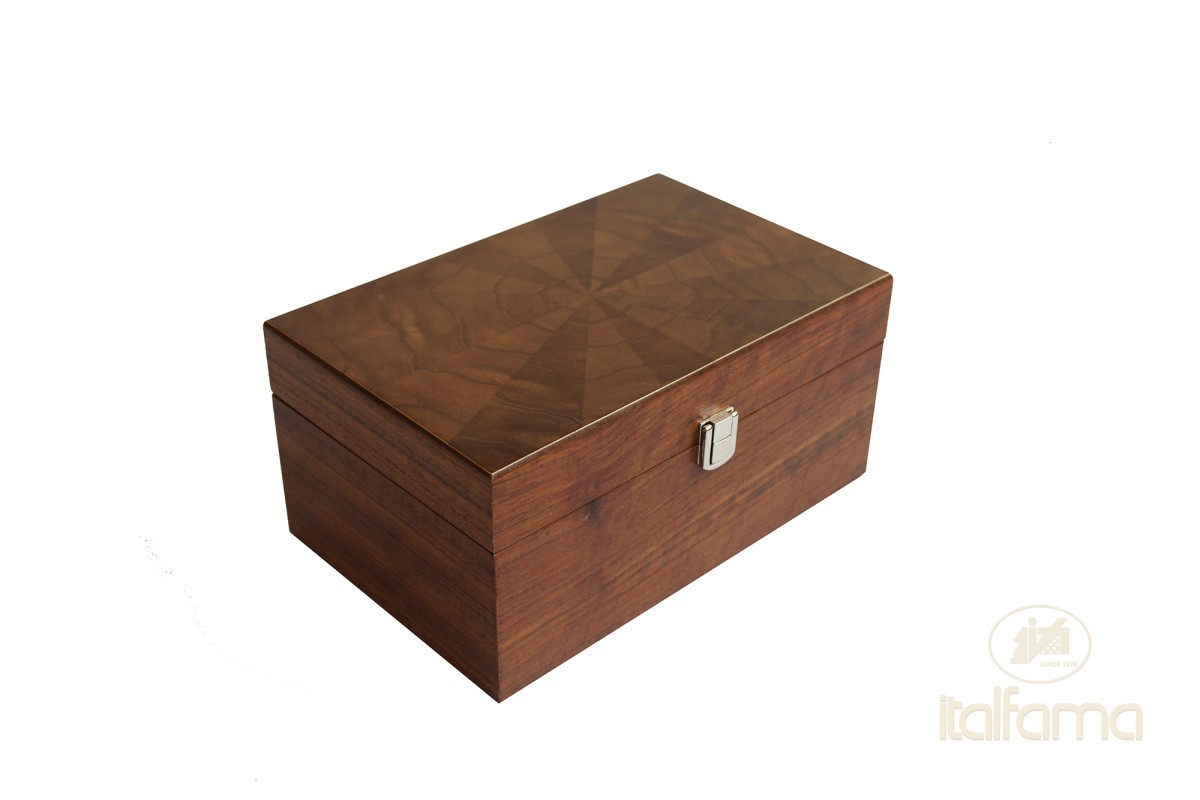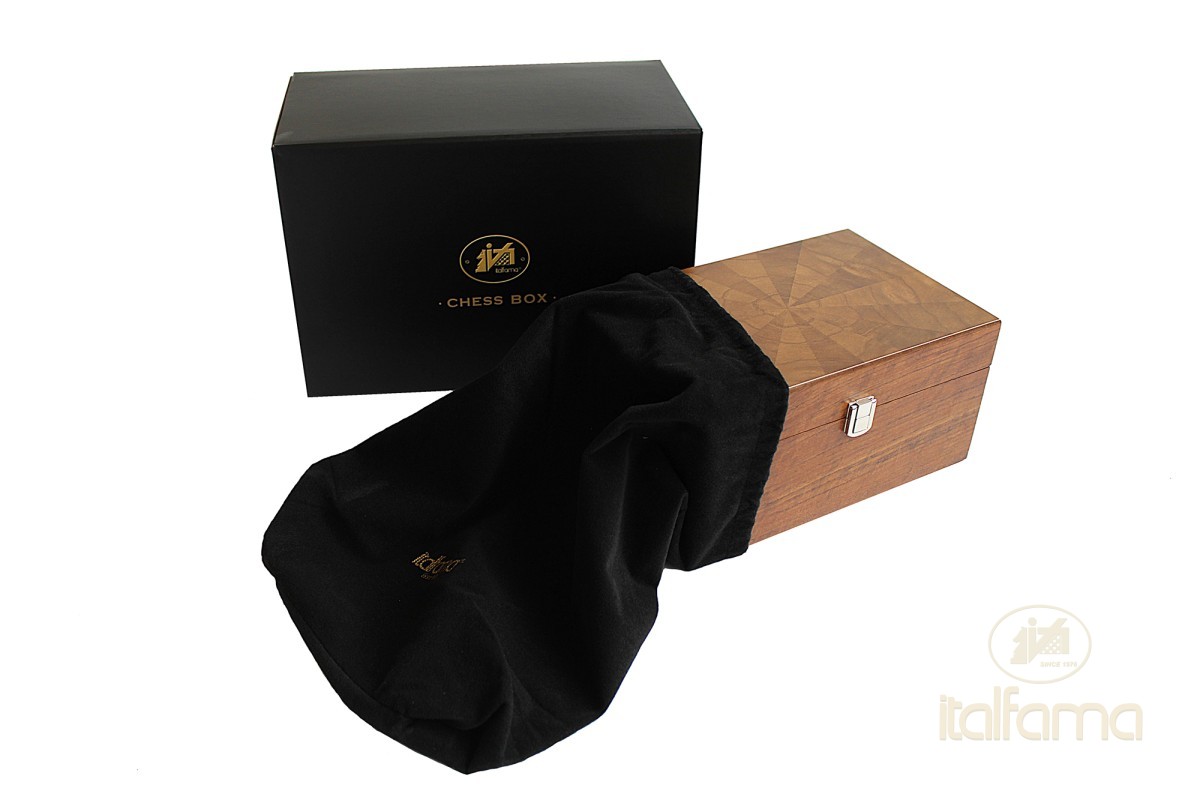 Luxe houten kist voor schaakstukken van walnotenfineer- Afmetingen: 24 x 15 x 12 cm - Geschikt voor schaakstukken t/m Staunton 6 (Koningshoogte 95 mm)- Vilten onderkant