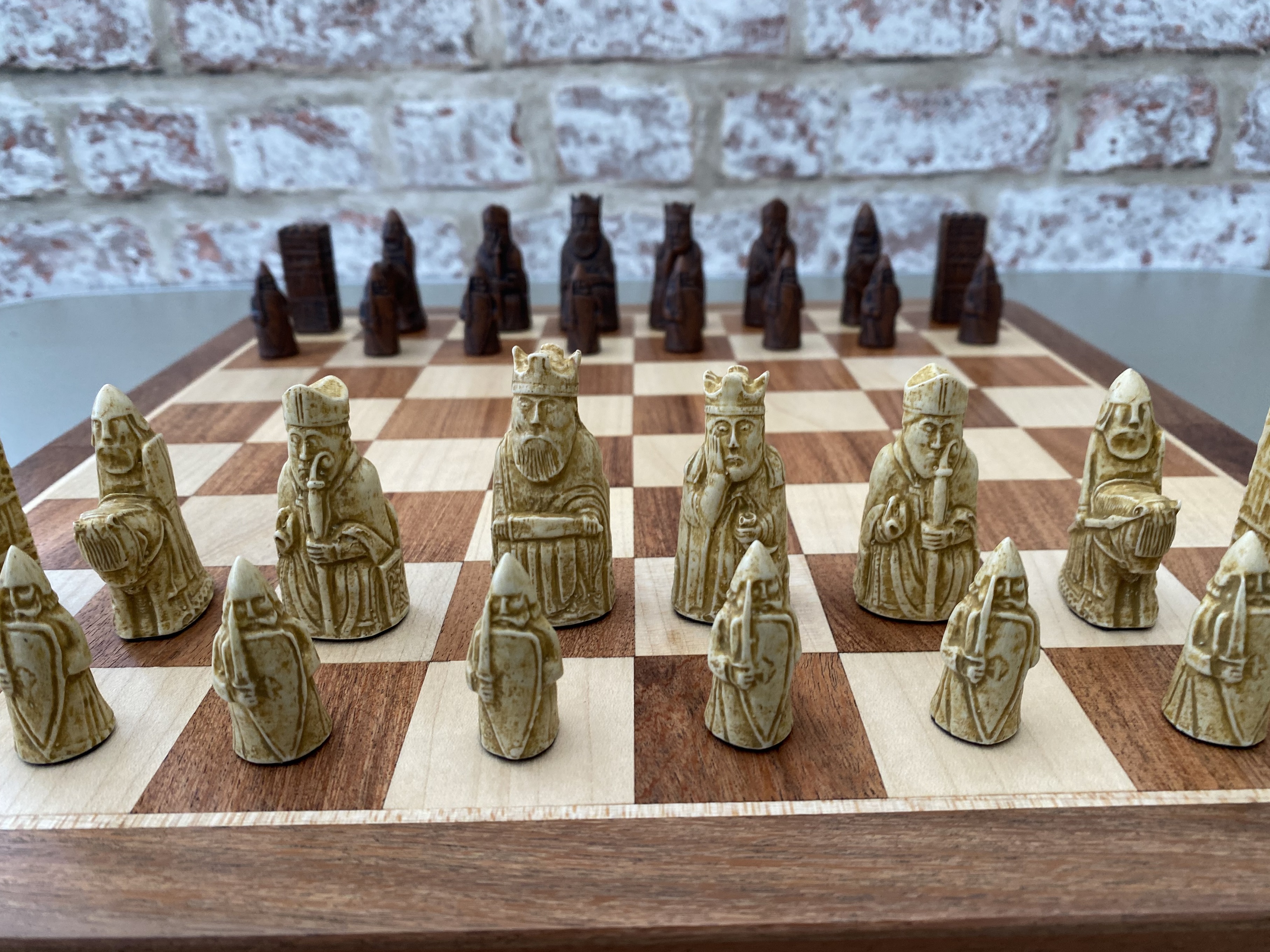 Een prachtige recreatie van de iconische set Isle of Lewis schaakstukken, gemaakt van gemalen...